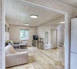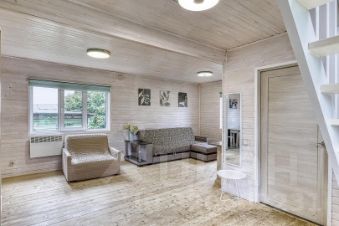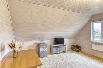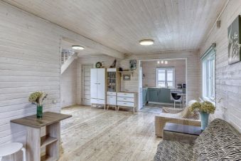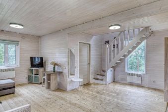 Две спальни на втором этаже, кухня-гостиная на первом.