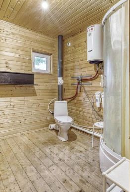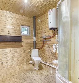 Санузел на первом этаже, есть возможность сделать еще один на 2м этаже (есть выводы канализации и подведена вода), но для удобства на втором этаже оборудована гардеробная.