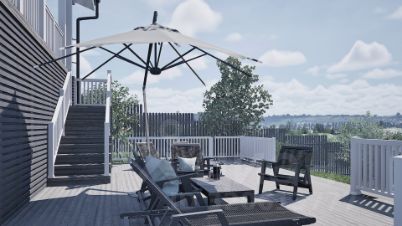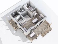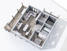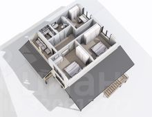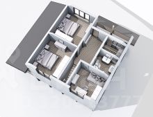В доме 4 спальни по 15м2, 2 санузла c ванной и душевой кабиной, гардеробная комната, балкон, прихожая, котельная, кладовка, чердак и большая кухня-гостиная с выходом на террасу.
