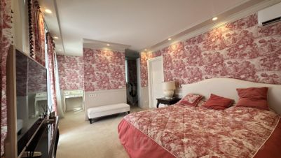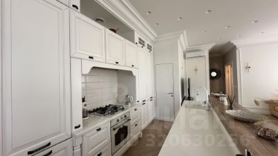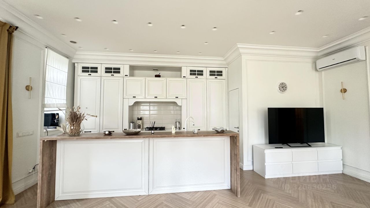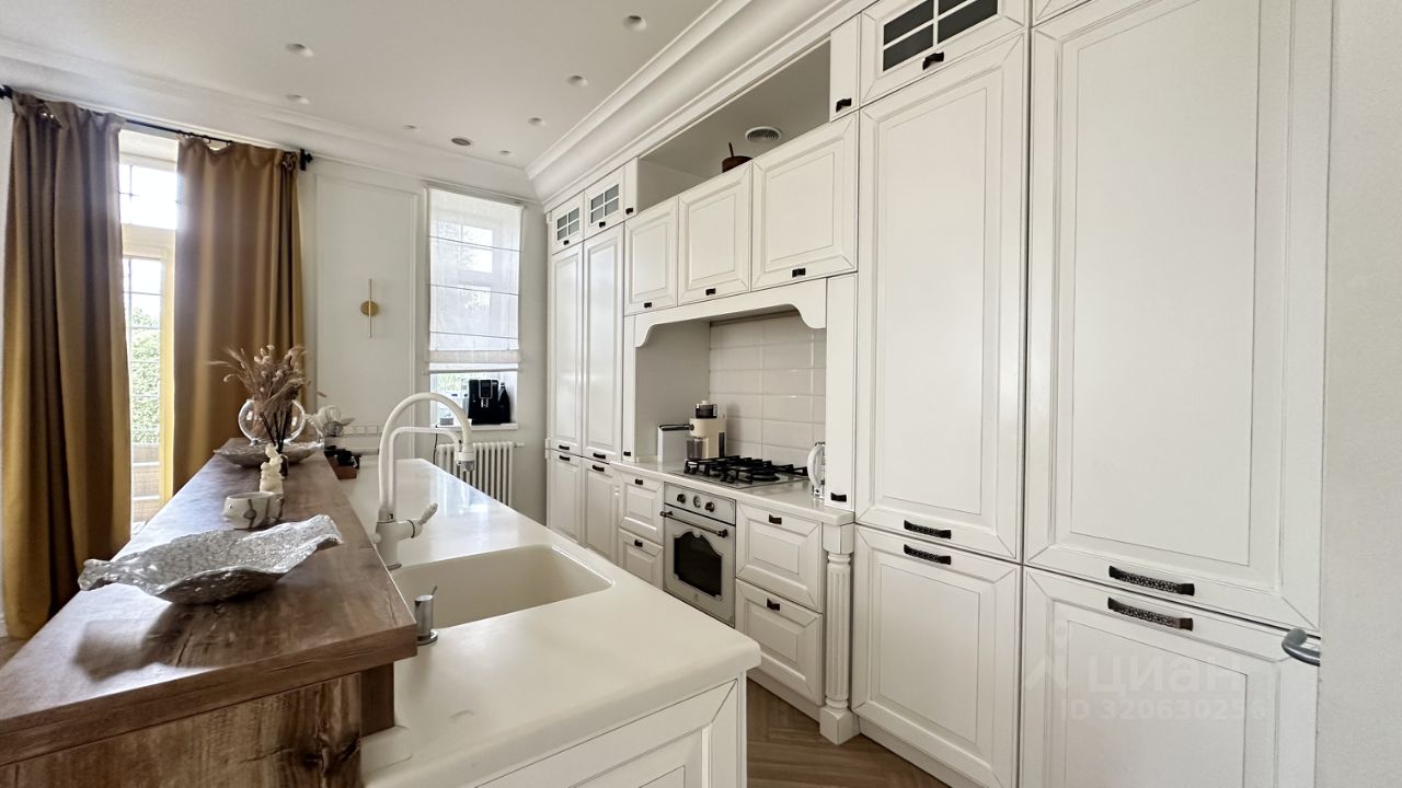 встроенная кухня с островом из массива. В спальне установлены электрокарнизы. В главной ванной встроенная мебель мрамор PIRGON.