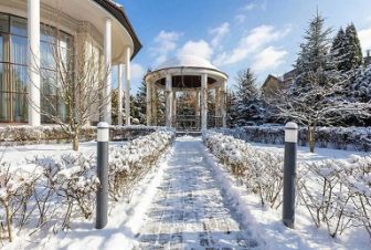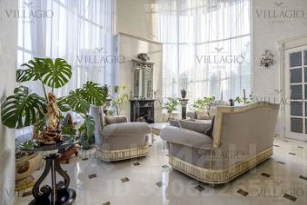 Особняк полностью готов к заселению. В каждой комнате дизайнерская мебель, зеркала, картины, живые цветы и различные стильные предметы интерьера, которые хочется рассматривать. В саду установлена уличная мебель — в хорошую погоду можно пить кофе и любоваться видами.
