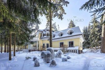 Интерьеры выполнены в дворцовом стиле. В особняке расположены 5 спален, 4 из которых с ванными, spa-зона с бассейном и сауной, гостиная с камином, кабинет и бильярдная комната. В отдельное здание со входом в дом вынесены гараж на 2 авто и квартира для персонала.