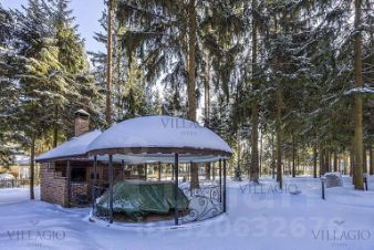 Двухэтажный особняк с бассейном, расположенный на лесном участке в 50 соток с ландшафтным дизайном и прогулочными дорожками в тени корабельных сосен.