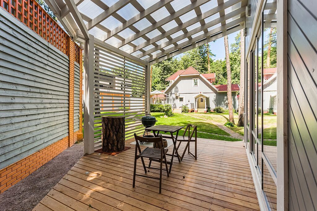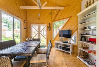 Морской домик с камином (16 кв.м.) и навесом (45 кв.м.), идеально подходящий для отдыха у воды или проведения мероприятий.