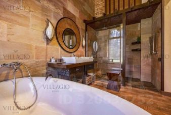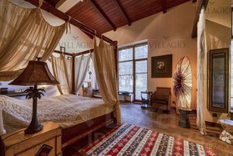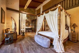 В мастер-спальне установлена кровать с балдахином. В детской деревянные строгие тона разбавлены ярким оранжевым цветом. Каждая комната наполнена атмосферой дальних путешествий и жизни на природе.