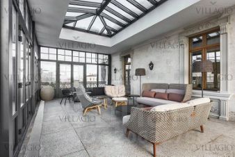 На первом этаже расположены гостиная и кабинет с каминами. Столовая зона идеальна для уютных семейных завтраков в окружении солнечного света. Она с трёх сторон окружена панорамными окнами и выходит на застеклённую террасу. Зона отдыха представлена пятью спальнями и четырьмя ванными комнатами.