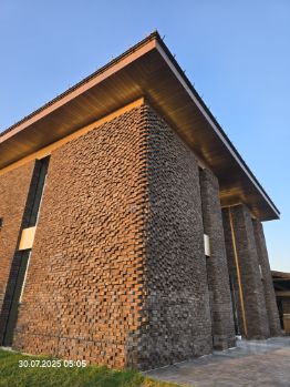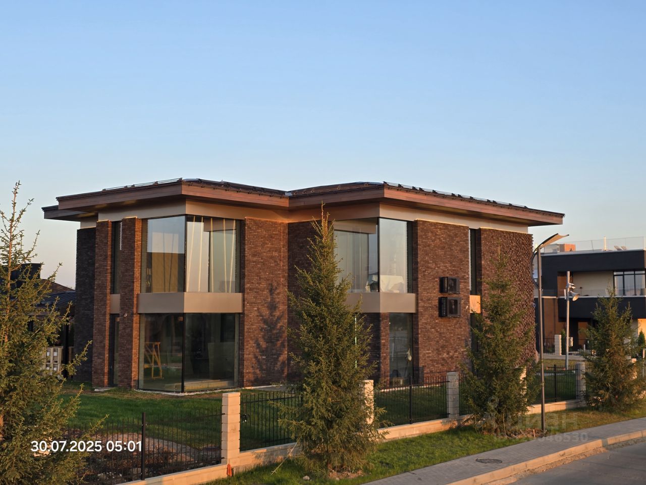 Монохром тёмно-коричневых оттенков, живая фактура 3D-кладки, эффект парящей крыши. Райтовские свесы в 130 см делают силуэт монументальным. В темноте подсветка превращает дом в арт-объект. Это архитектура, которая останется актуальной и через десятилетия.