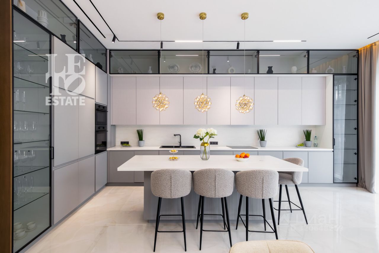 Интерьер дома наполнен стильной мебелью. Во всех помещения дома установлено многоуровневое освещение (дневное и вечернее). Сантехническое оборудование подключено. Есть приточно-вытяжная вентиляция.