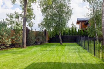 На земельном участок площадью 10 соток выполнен ландшафтный дизайн. Площадка перед домом вымощена керамогранитными блоками на цементной подушке. На ней можно комфортно разместить несколько автомобилей. Задний двор благоустроен, есть две террасы.