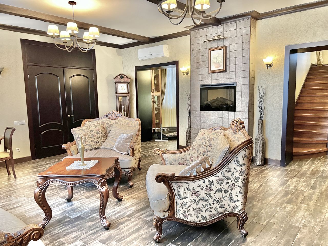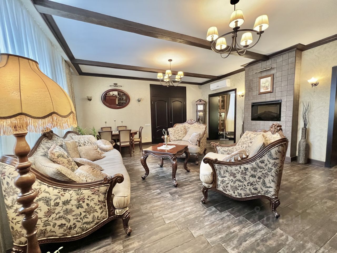 Просторная гостиная 40 м² с итальянской мебелью из массива