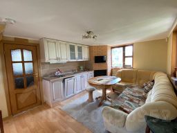 2 этаж: жилое помещение с большой комнатой, мебелью, встроенной кухней, балконом, санузлом с душем.