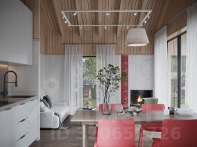 Высокие потолки 3.8м в коньке, панорамные окна 2.3м, камин и веранда.