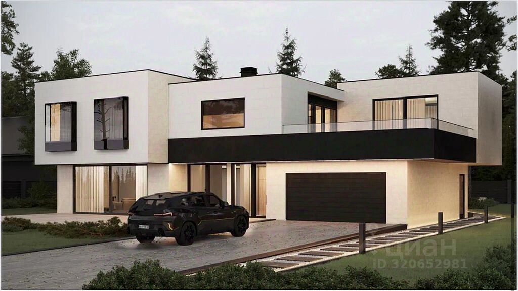 - Фасад: натуральный камень. Встроенные в фасад водоотводы. Архитектурная подсветка.