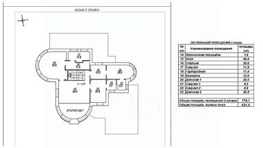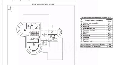 Планировка особняка предусматривает создание пяти спален, четыре из которых расположены в комнатах с эркерами. На мансардном этаже спроектировано помещение для персонала и relax-зона с сауной. Гараж на 2 машиноместа в доме.