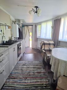 Продаю загородный дом для круглогодичного проживания с возможностью прописки. Двухэтажный дом из бруса размером 6 на7 + кухня 12кв.м. Утепленный и обшитый металлическим сайдингом. В доме есть газ, вода( центральная) + колодец + скважина( заморожена)) Так же имеется кирпичная печь. Стоимость электричества идет по деревенскому тарифу, что значительно ниже по цене. В доме санузел( септик), Также есть Интернет, телевидение, охранная сигнализация. На участке бревенчатая 2-х этажная баня 3,5на7 с пристройкой подсобки ,для садового инвентаря. Большая беседка 6на3 , парник. Много декоративных, плодовых деревьев и кустарников (яблоня ,груша слива ,смородина красная, черная, крыжовник ,малина, клубника, жимолость, виноград). Территория СНТ под круглосуточной охраной и видеонаблюдением .На территории магазин ,детская площадка, пруд, спортивная площадка. Удобная транспортная доступность, от МКАД 29 км.по Волоколамке или по Новой Риге , съезд ЦКАД.