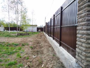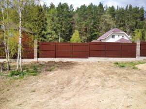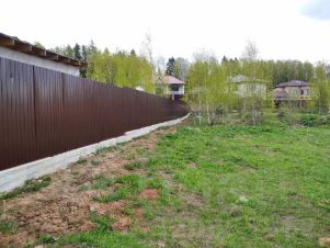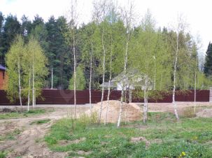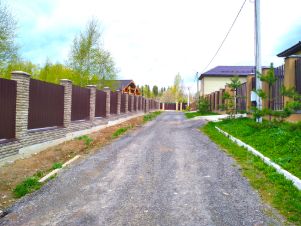 Участок 10 соток под дачное строительство, огорожен капитальным забором из профлиста с каменными столбами и откатными воротами, с хорошим и удобным подъездом в центре поселка, с отличным видом из окон и солидным окружением, соседи вокруг отстроились, соседствуют с одной стороны.