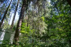 Высокие деревья (сосны) на территории создают уютную атмосферу отдыха и тишины.