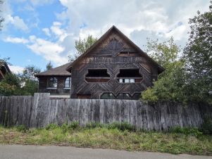 На участке расположен большой дом площадью 204 кв.м, выполненный из бруса и напоминающий русский терем.