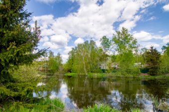 Удачное расположение дома: удобный съезд с Волоколамского шоссе, шаговая доступность до МЦД. Рядом вход в чистый хвойный лес, много грибов, ягод. Перед домом живописный пруд, в котором обитают цапли.
