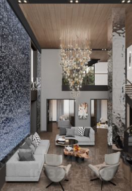 Дом построен по индивидуальному проекту, с использованием качественных и дорогостоящих материалов. Панорамные окна, высокие потолки, просторные комнаты с отдельными санузлами и гардеробами. По проекту дома запланирована библиотека, бильярдная комната и тренажерный зал с потрясающими видами на лес.