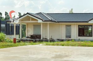 Под основной дом залит фундамент - плита, подведены центральные коммуникации: электричество, водопровод и канализация. Газоснабжение проходит по границе участка.