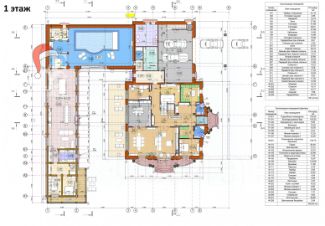 Подсобные помещения, бильярдная-бар, коридор с лестницей, кухня, санузел, две спальни, помещение для оборудования бассейна, гараж, мастерская, итальянский дворик, котельная, вход на второй этаж, раздевалка, бассейн, душевая, парная, хаммам, санузел, холл с кухней, две спальни, санузел, серверная, мастерская