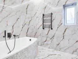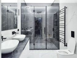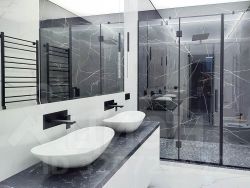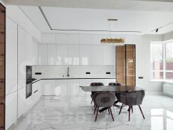 Материал полов - инженерная доска, керамогранит - система тёплых полов.