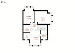 2 этаж - просторная хозяйская спальня с оборудованной гардеробной комнатой и ванной, спальня с видом на лес, детская комната, санузел с ванной.