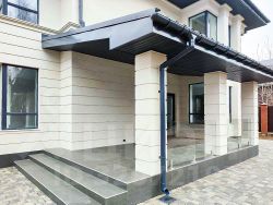 Материал строительства - газобетонные блоки, облицован - дагестанским камнем