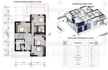на первом этаже расположены: просторный холл, гараж, постирочная, сан узел, гардероб, гостиная совмещенная с кухней и выходом на террасу, кладовая. На втором этаже: холл с выходом на балкон, 2 гостевые спальни, сан узел, 1 мастер спальня с гардеробной и сан узлом. Подключен ко всем центральным коммуникациям.