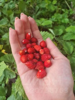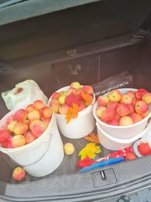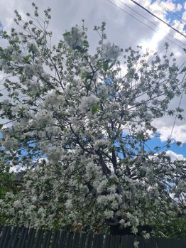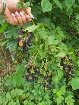 Несколько сортов яблонь, ежевика, малина, смородина, черноплодная рябина, вишня. Перед домом растут шикарные клены.