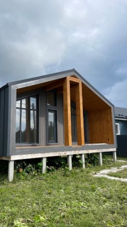 В доме: Кухня-гостиная, 2 спальни, санузел и веранда.