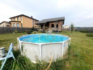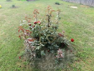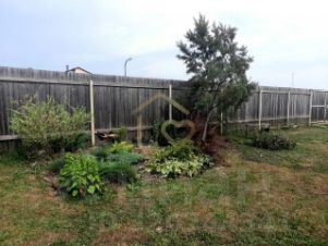 Участок правильной прямоугольной формы, ровный, ухоженный. По периметру огорожен деревянным забором. Есть ворота для въезда. Есть плодово-ягодные насаждения, многолетние цветы. Также на участке расположен каркасный бассейн.