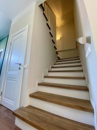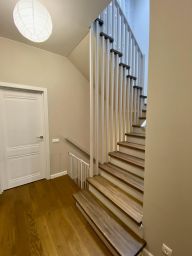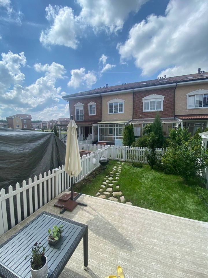 Светлый таунхаус с хорошим ремонтом и всем необходимым для комфортного проживания. Удачно расположен между двумя мини-скверами (облагораживание второго в планах), без сквозного проезда автомобилей под окнами. С другой стороны, одинаково близок к лесу и въездной группе.