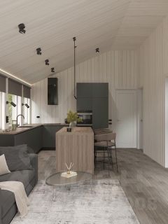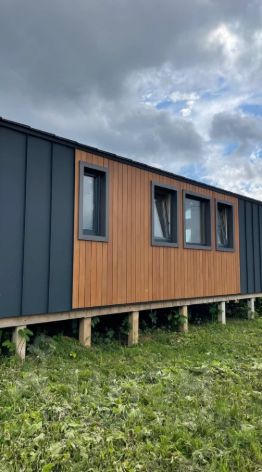 В доме: Кухня-гостиная, 2 спальни, санузел и веранда.