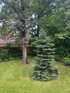 Одной из ключевых особенностей данного лота является благоустроенная территория. На ней большое количество крупных деревьев (ели, сосны, туи).