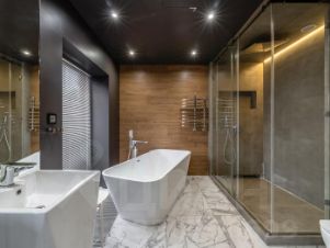 В санузлах премиальная сантехника от lаufеn и grоhе.
