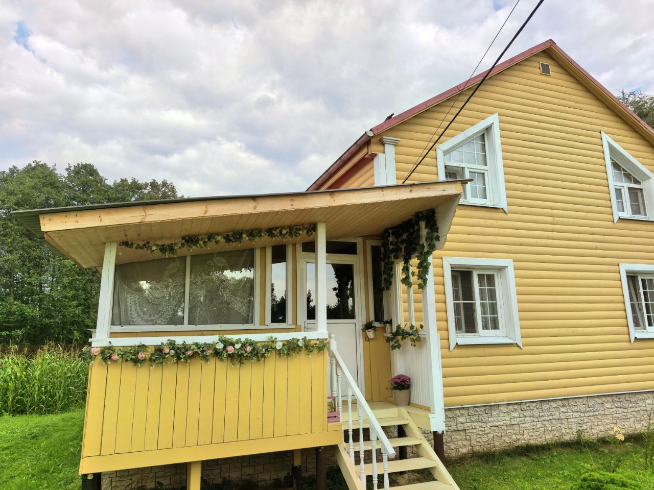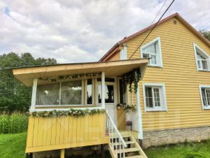Гостиная с кухней (20 кв м), две спальные комнаты (20 кв м и 15 кв м), санузел и терраса с открытой верандой на первом этаже, большая спальня (36 кв метров) и кладовая комната - на втором этаже. Хороший асфальт до участка. Дорогу зимой чистят, ночью освещается.