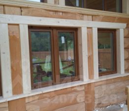 В доме уже сделана отделка подоконники балкон (полы лиственница) и окна