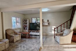 Коммуникации: электричество; газ в перспективе; 2 колодца (на баню и на дом); канализование - очистные сооружения "Oy Oponor AB" (Финляндия); отопление - котел на жидком топливе.