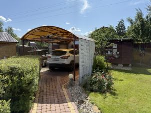 Ухоженный участок 9 соток с газонным покрытием и разнообразными садовыми растениями (фруктовые и ягодные), ровный, прямоугольный. На участке располагается мангальная зона с местом для отдыха, 4 небольшие высокие грядки, навес для авто, хозяйственные постройки, дорожки из брусчатки, участок обнесен металлическим забором (профнастил 2,2 м). Оставим снегоуборщик и садовую технику всё работает.