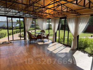 Крытая теплая даже в межсезонье терраса (40 м²) с панорамным остеклением в пол и светопрозрачной крышей, с 2-мя круглыми столами: большой обеденный для компании и уютный для завтраков наедине. Встроенный 4-х метровый шкаф-купе для удобного хранения без потери пространства.