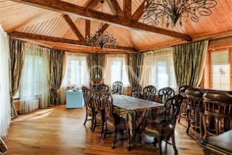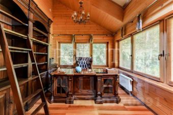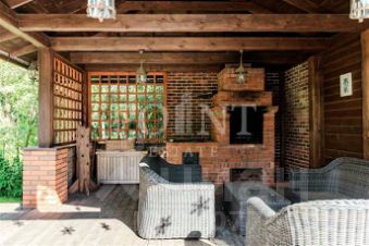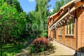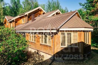 Лот: 114049. Продается уютный двухэтажный дом из клееного бруса площадью 307м2, на живописном лесном участке 24 сотки в поселке "Истра Кантри Клаб". Строение выполнено в стиле Шале с отделкой под ключ. На территории расположен гостевой дом площадью 188 м2, гараж на 2 машиноместа, зона барбекю и детская площадка. Планировка дома включает в себя 2 этажа. На 1-ом этаже: просторная прихожая, гостиная с высоким потолком и камином, современная кухня с обеденной зоной, кабинет, два санузла, гостевой санузел, крытая терраса, отдельная котельная. А на 2-ом этаже: две спальни, санузел, холл, помещение свободного назначения, гардеробная. Так же планировка гостевого дома включает в себя: 1-й этаж: техническое помещение. 2-й этаж: две спальни, санузел, кухня, гостиная. Это экологичный дом с высокими потолками и панорамным остеклением, камином для уютных вечеров.