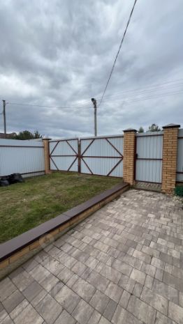 Забор - из металлопрофиля, с трех сторон - на ленточном фундаменте.
