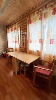 На 1-м этаже дома - кухня, санузел (раздельный), гостиная-спальня. Большая утепленная веранда в виде большого эркера может использоваться как столовая (есть отдельный выход из кухни).