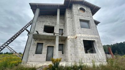 ПРОДАЕТСЯ большой, правильной формы и комфортный по площади Земельный участок, площадью 44 сотки. На участке расположен недостроенный капитальный дом из пеноблоков, площадью - 260 кв.м, два полноценных этажа и мансарда. Высота Этажа в данном варианте -3,40 метра. Электричество подключено 15 кВт, центральный водопровод, имеется своя скважина, глубина -65 метров, уже есть септик ТОПАС. Дом без подвала, Ленточный фундамент, перекрытия - залита ЖБ плита на первом и втором этажах. Огромная часть работ выполнена. Улицы освещаются. Есть проект дома, вышлю по желанию.