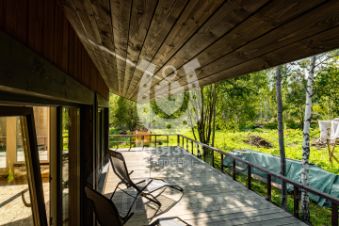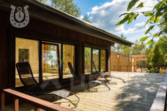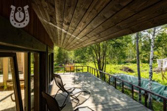- Грибной лес, рядом речка, пляж, детские игровые зоны.