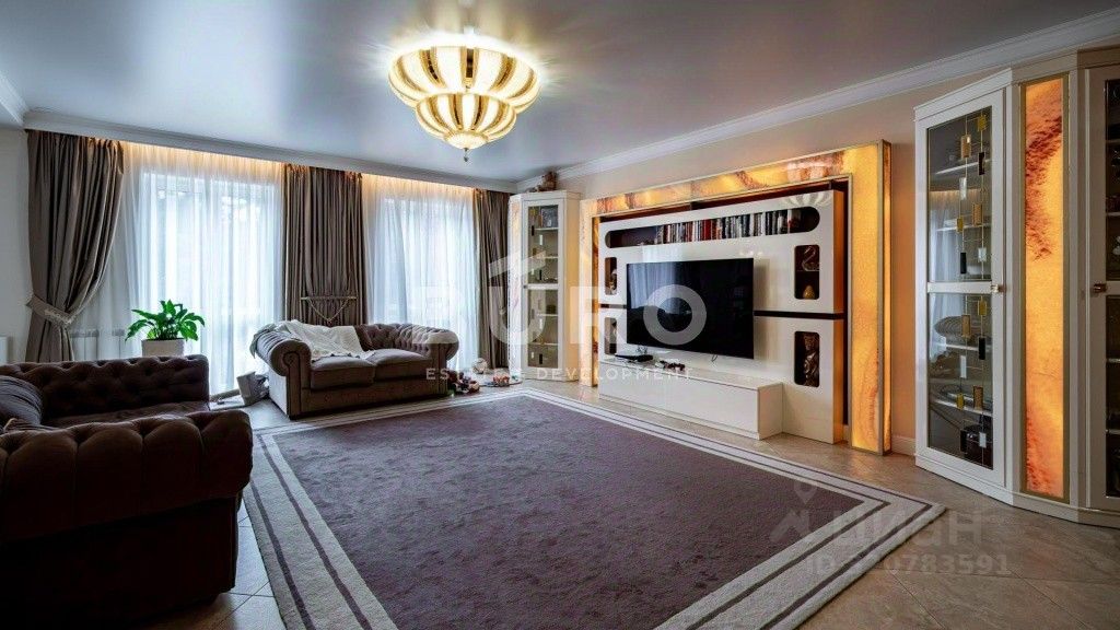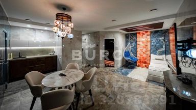 Роскошный дизайнерский интерьер укомплектован изысканной мебелью и предметами декора. Большая площадь остекления и высокие потолки делают внутреннее пространство объемным, светлым и уютным. Установлена сантехника ведущих производителей.