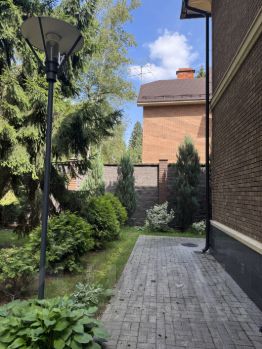 Земельный участок ровный, с дорожками из брусчатки и освещением, ландшафтный дизайн, дренажная система от подтопления, на участок есть въезд со стороны проезжей части - гостевая парковка. Есть зоны отдыха, детский уголок и прогулок. По периметру участка стоит высокий забор. на территории участка растут вековые сосны.