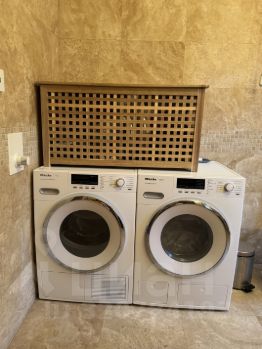 Техника в доме - стиральная и сушильная машина Miele, духовка, плита, купольная вытяжка и посудомоечная машина - Smeg, в котельной - система умного дома, газовые котлы (2 шт.) Buderus, обслуживаются Мособлгаз.